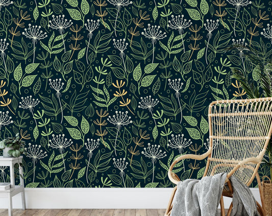 Hand Drawn Wild Flowers Botanical Wallpaper Wall Design