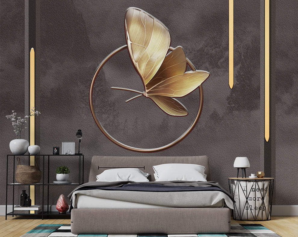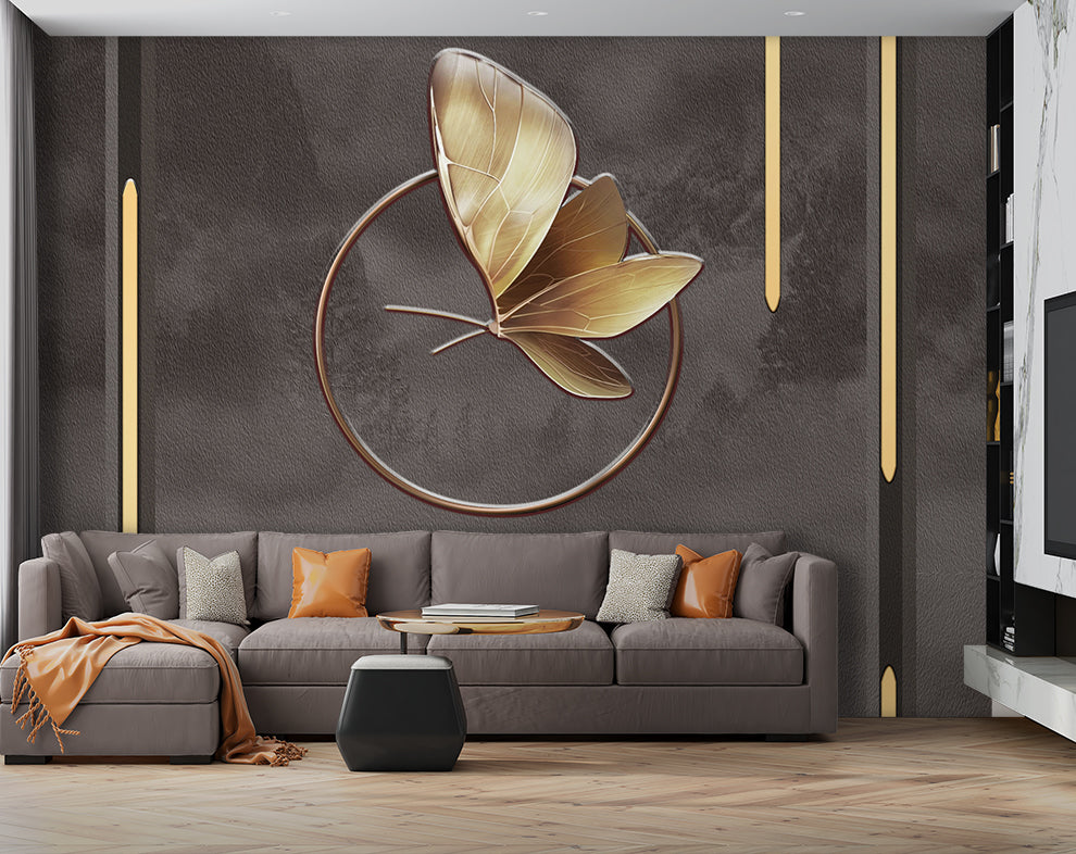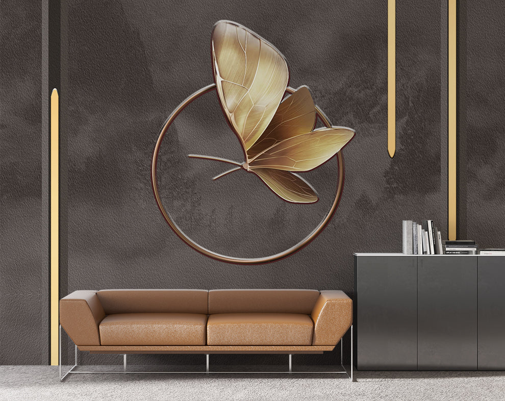 3D Golden Metallic Butterfly Wallpaper