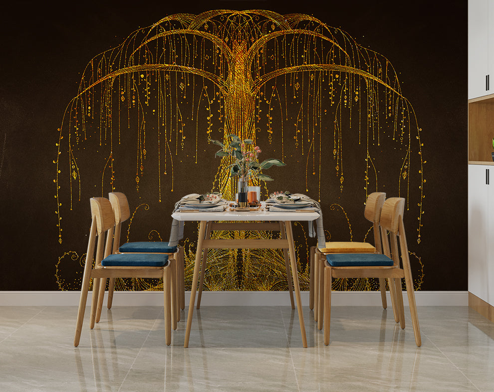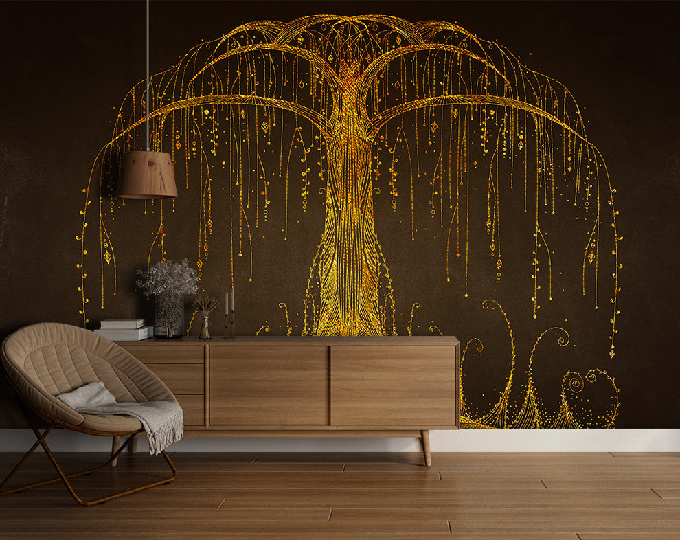 Abstract Golden Tree Mural Wallpaper