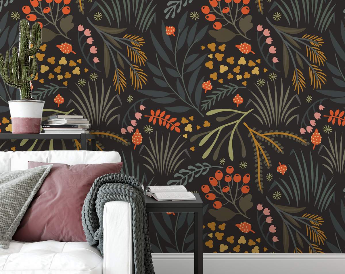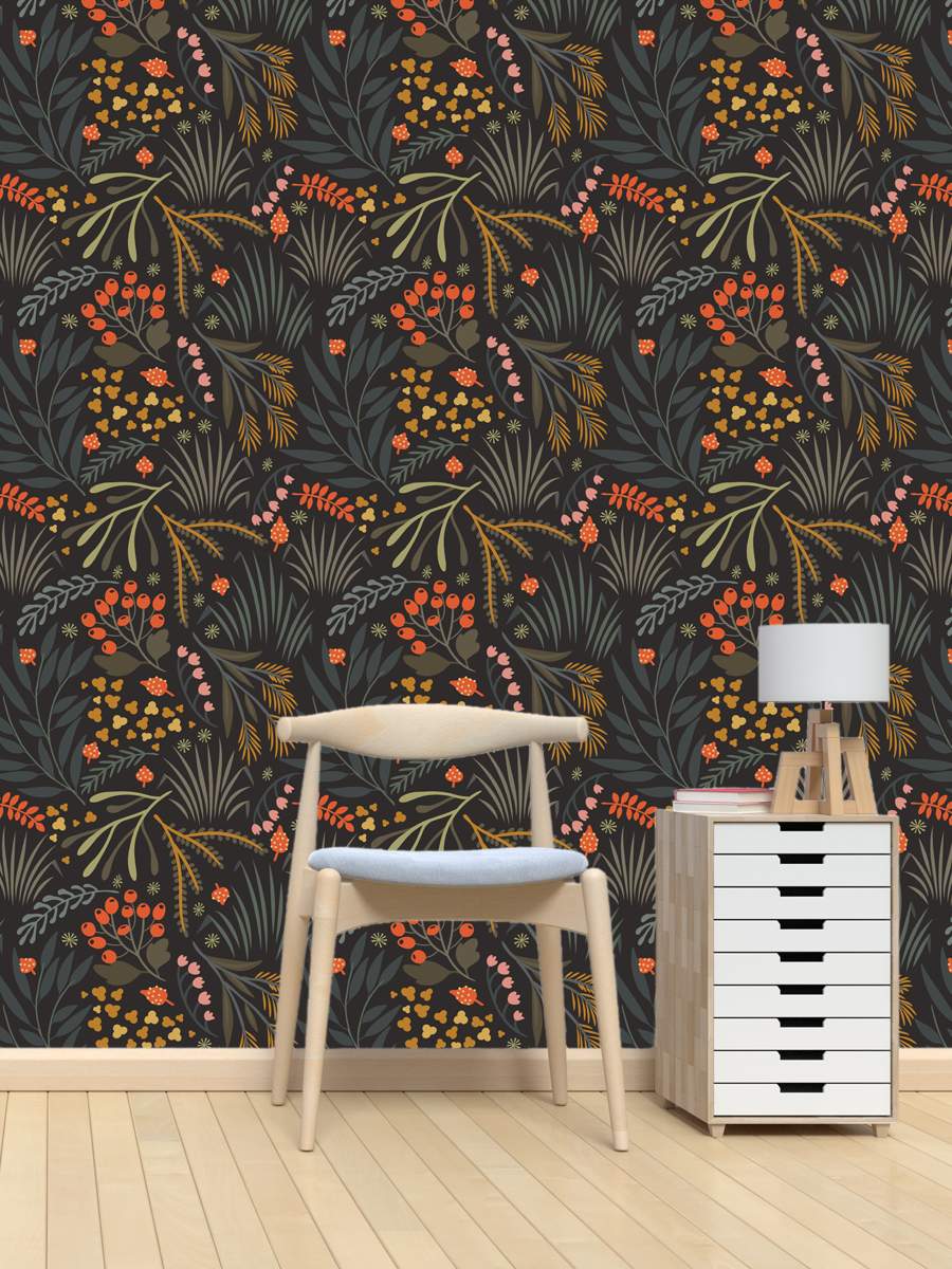 Beautiful Delicate Dark Floral Wallpaper Rolls