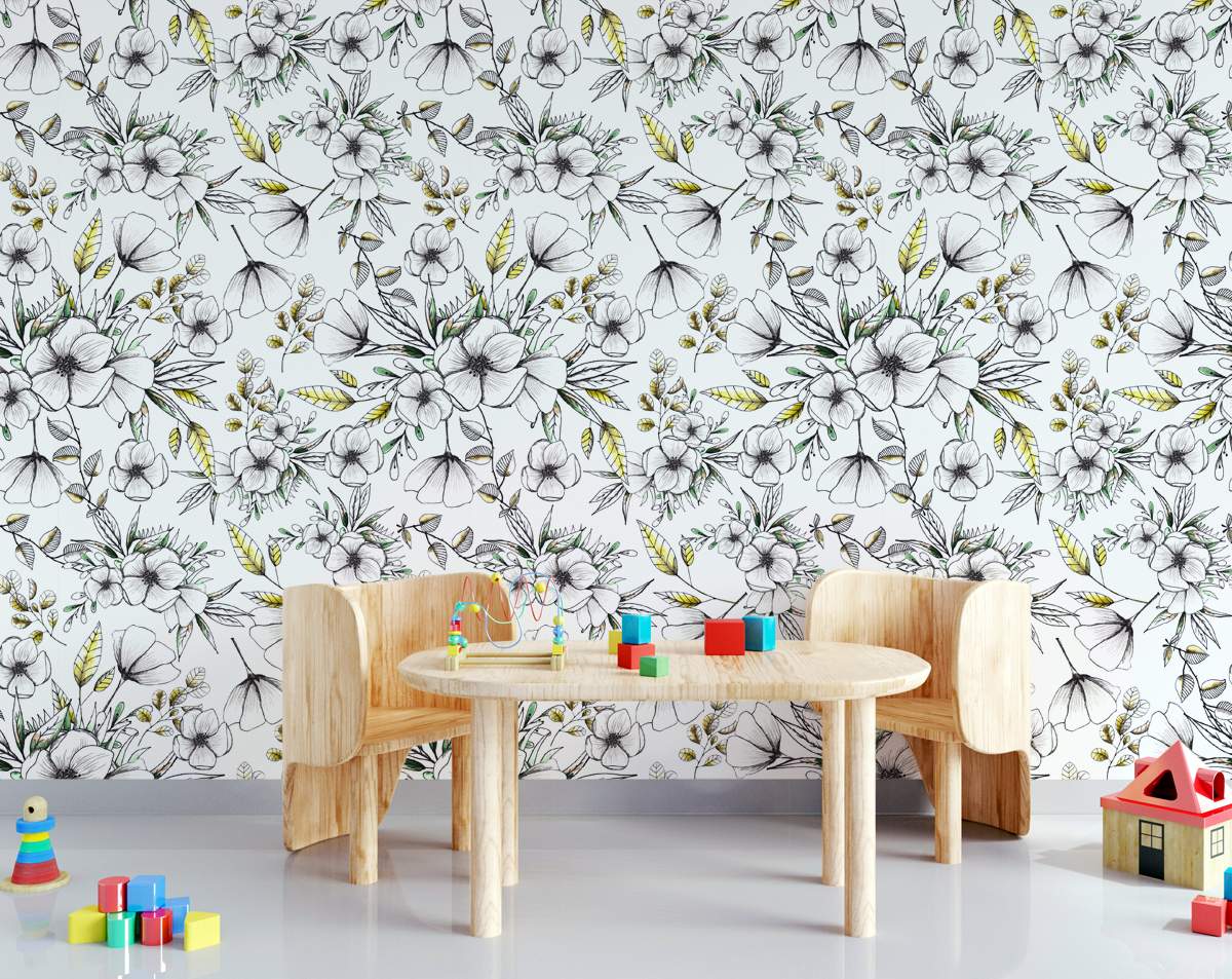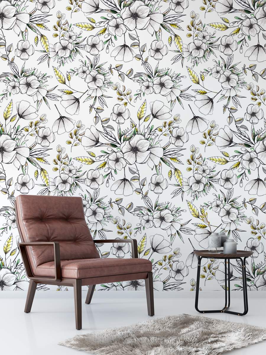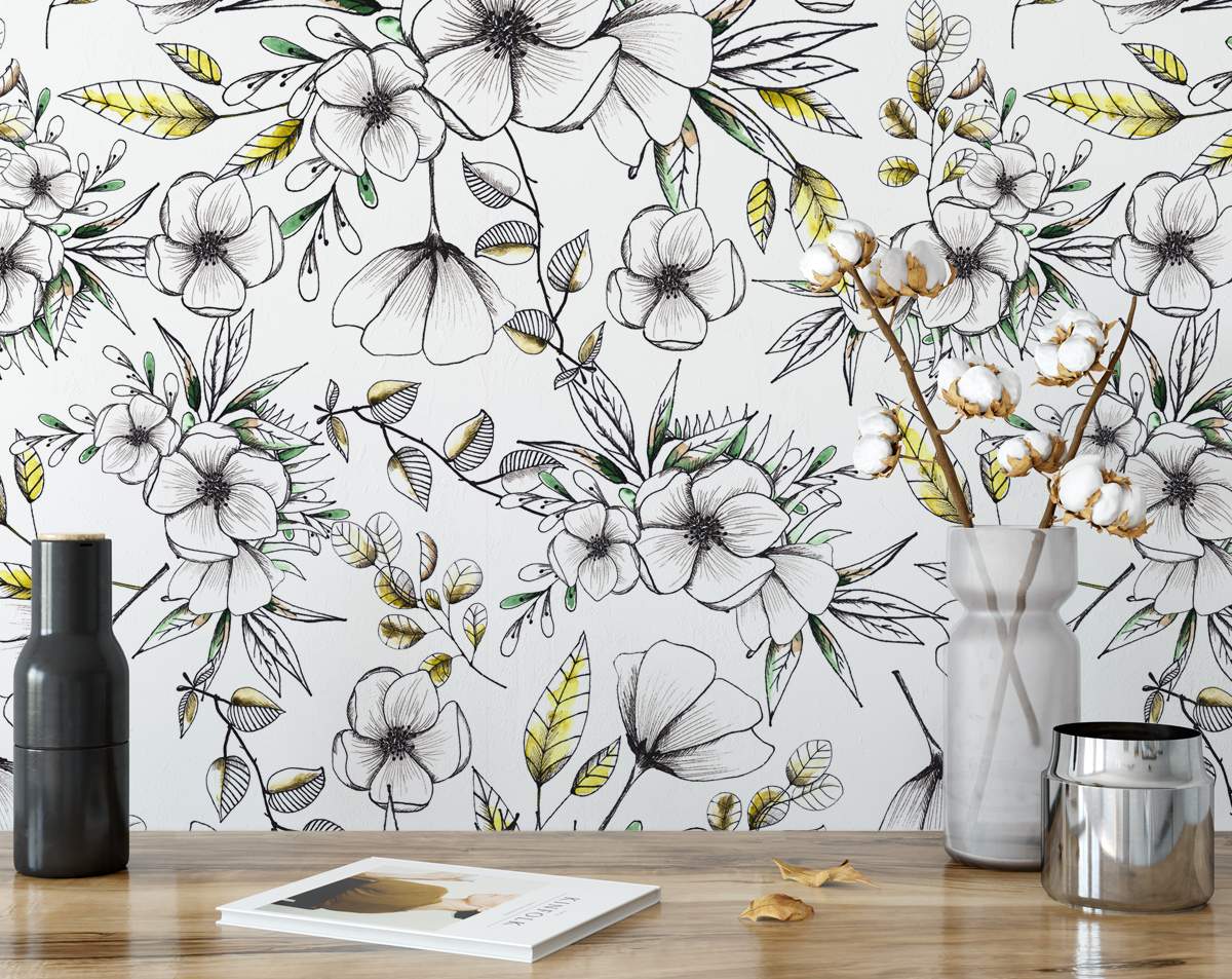 Beautiful Hand painted Flowers and colourful leaves Wallpaper Rolls