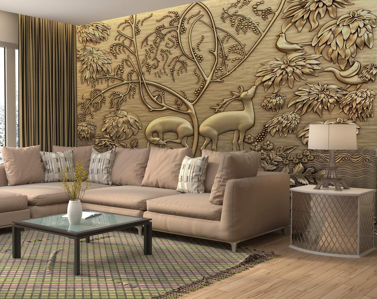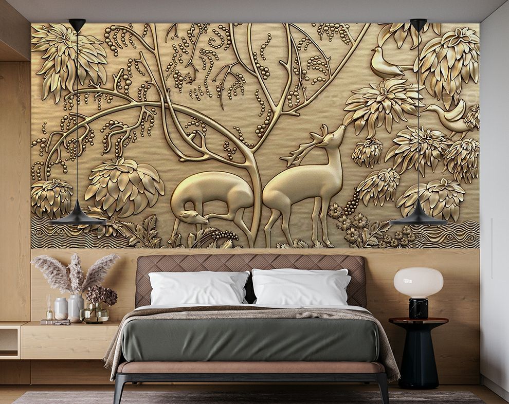 3D Mural Coper Jungle Theme With Animal Wallpaper