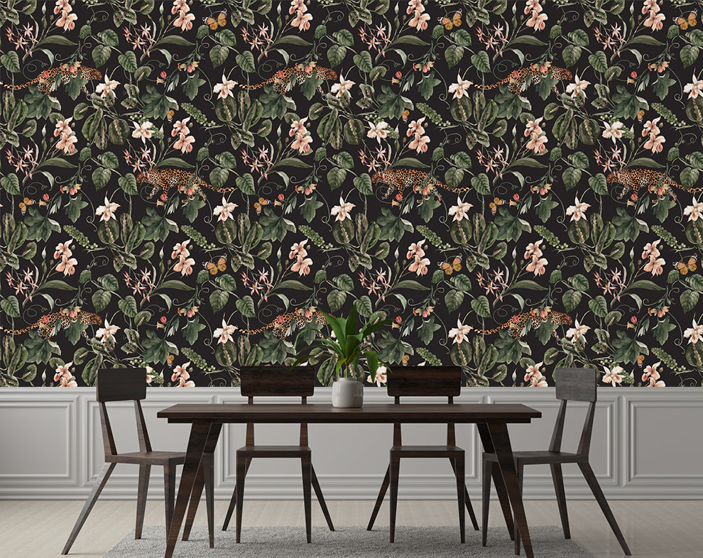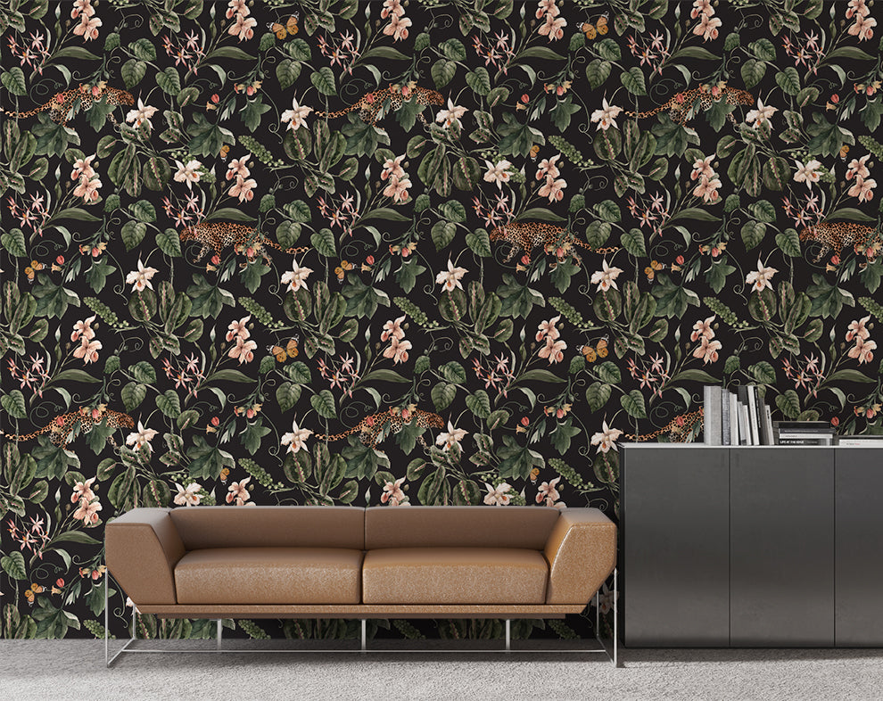 Dark Tropical Leaves And Tiger Wallpaper Rolls