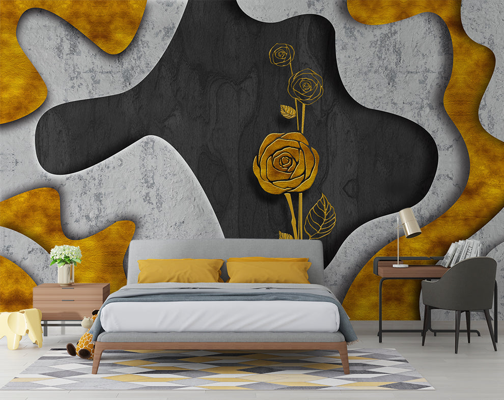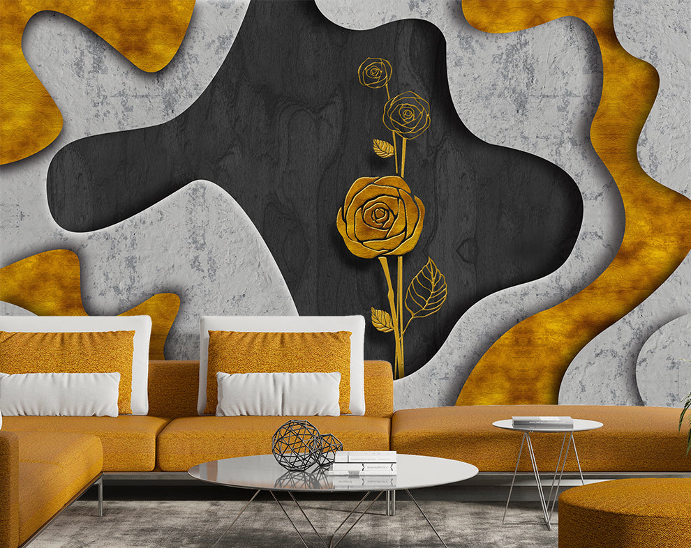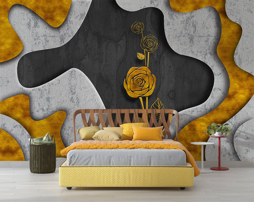 Golden Rose And Grey And Yellow Color Marble Art Wallpaper