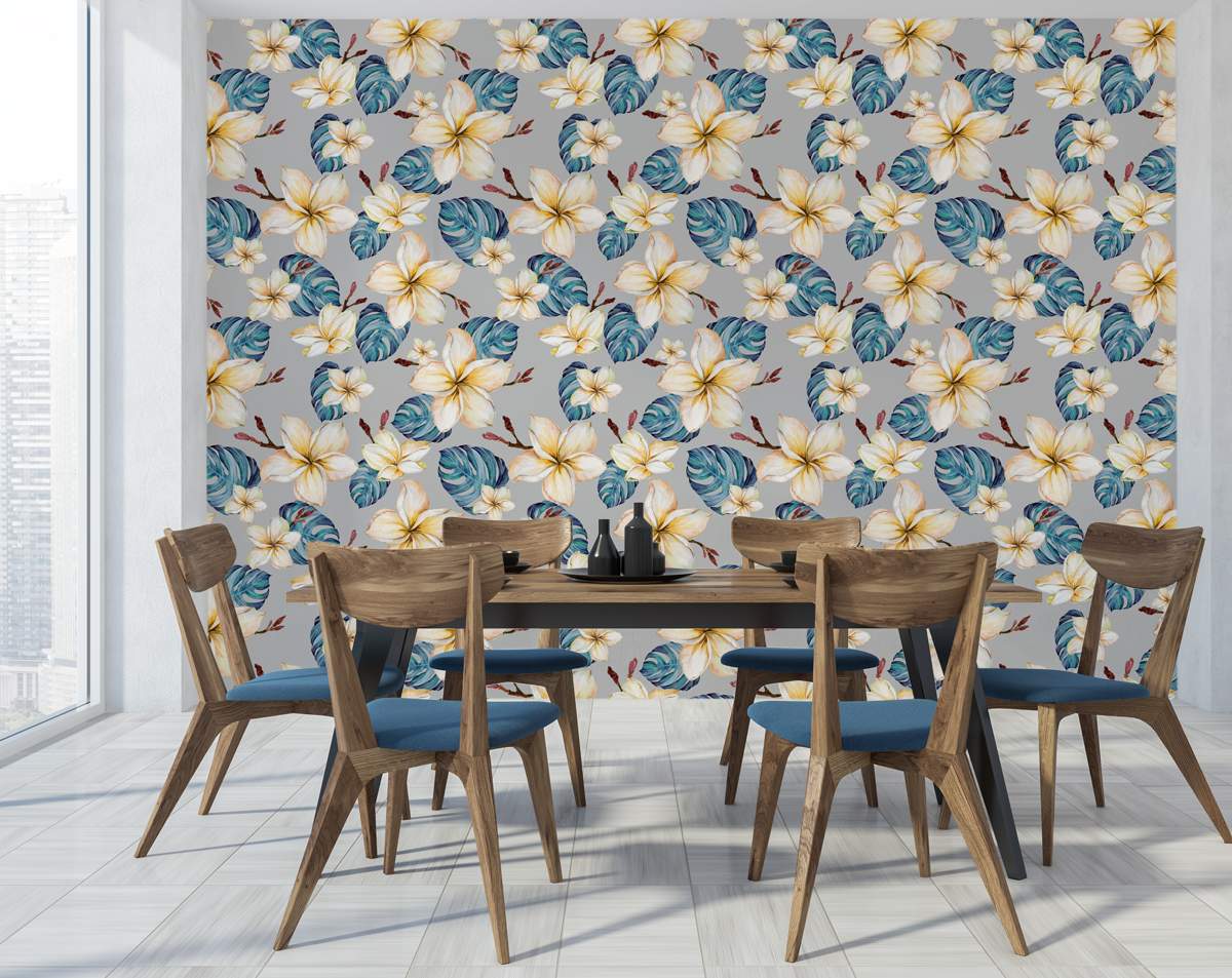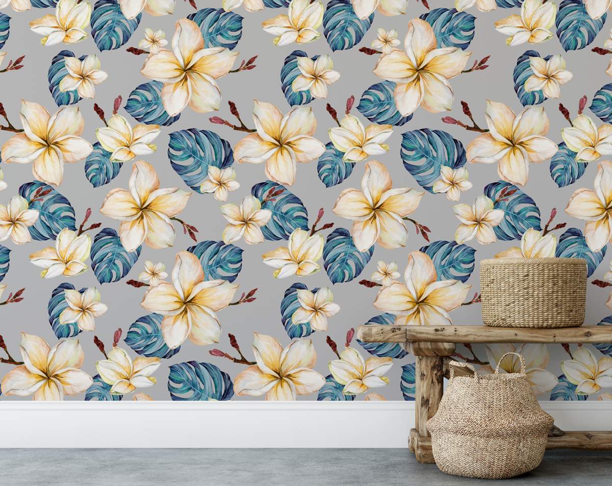 Hand Painted Watercolour White and Yellow Flowers Wallpaper Rolls