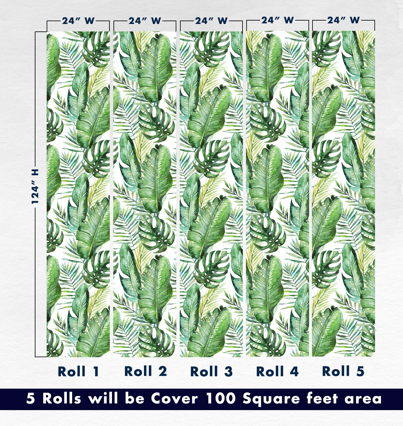Jungle Tropical Leaves Watercolour Style Wallpaper Rolls