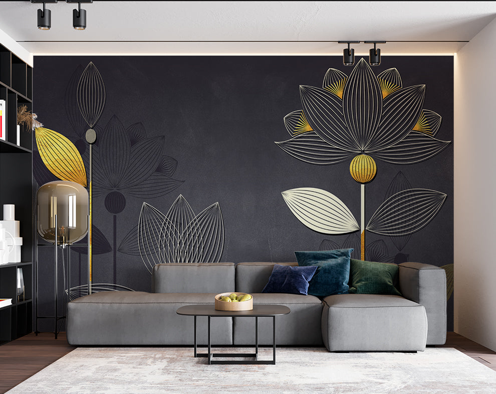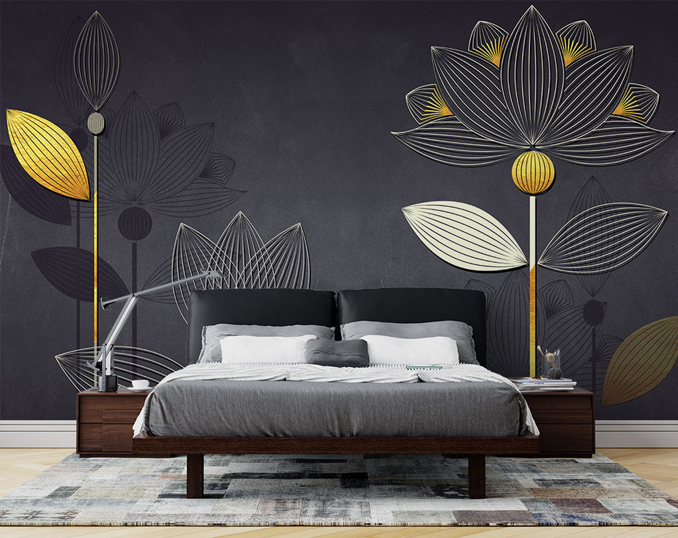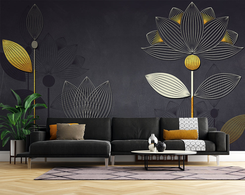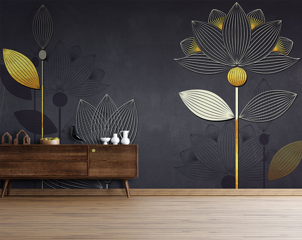 Luxury Golden Liner Lotus Wallpaper