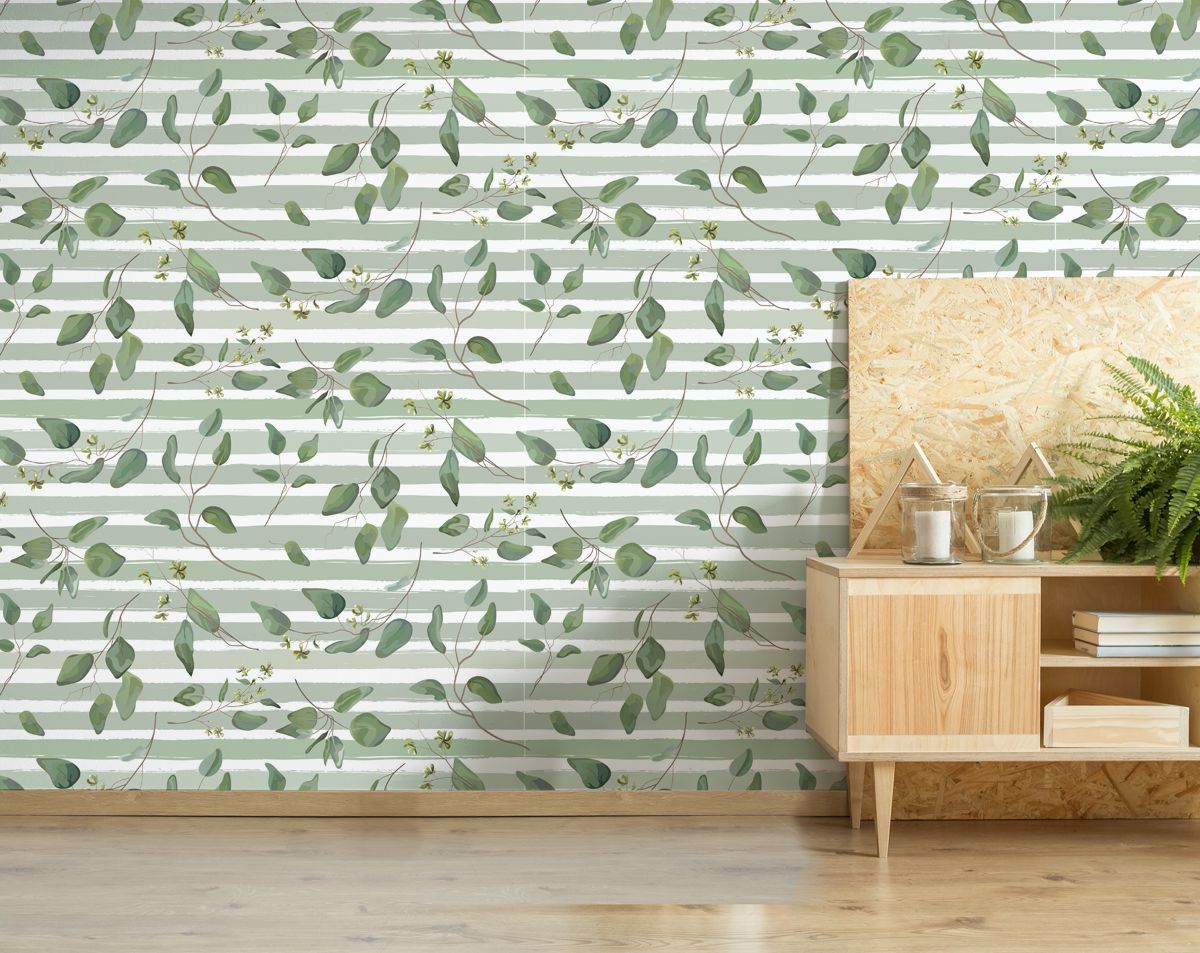 Mint Leaf Stripes Decorative Wallpaper Rolls