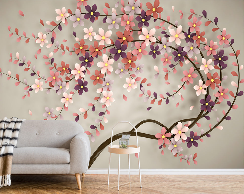 Modern Creative Flowers Tree Mural Wallpaper