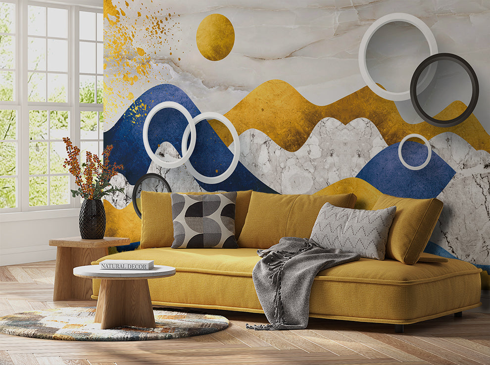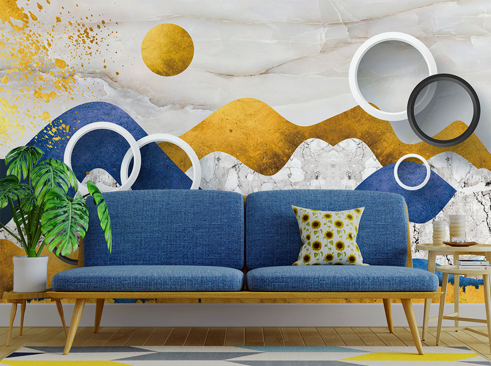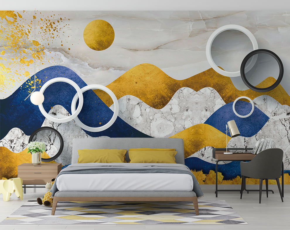 Modern Fashion 3D Beautiful Circular Rings Mountains Wallpaper