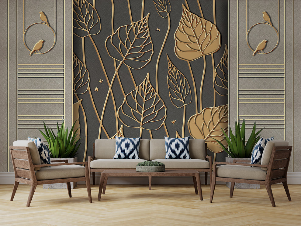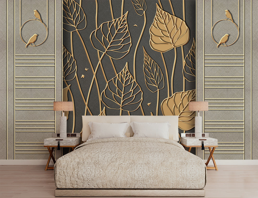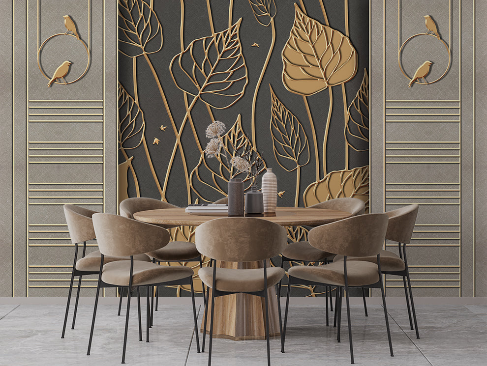 Modern Simple Golden Leaf Wallpaper