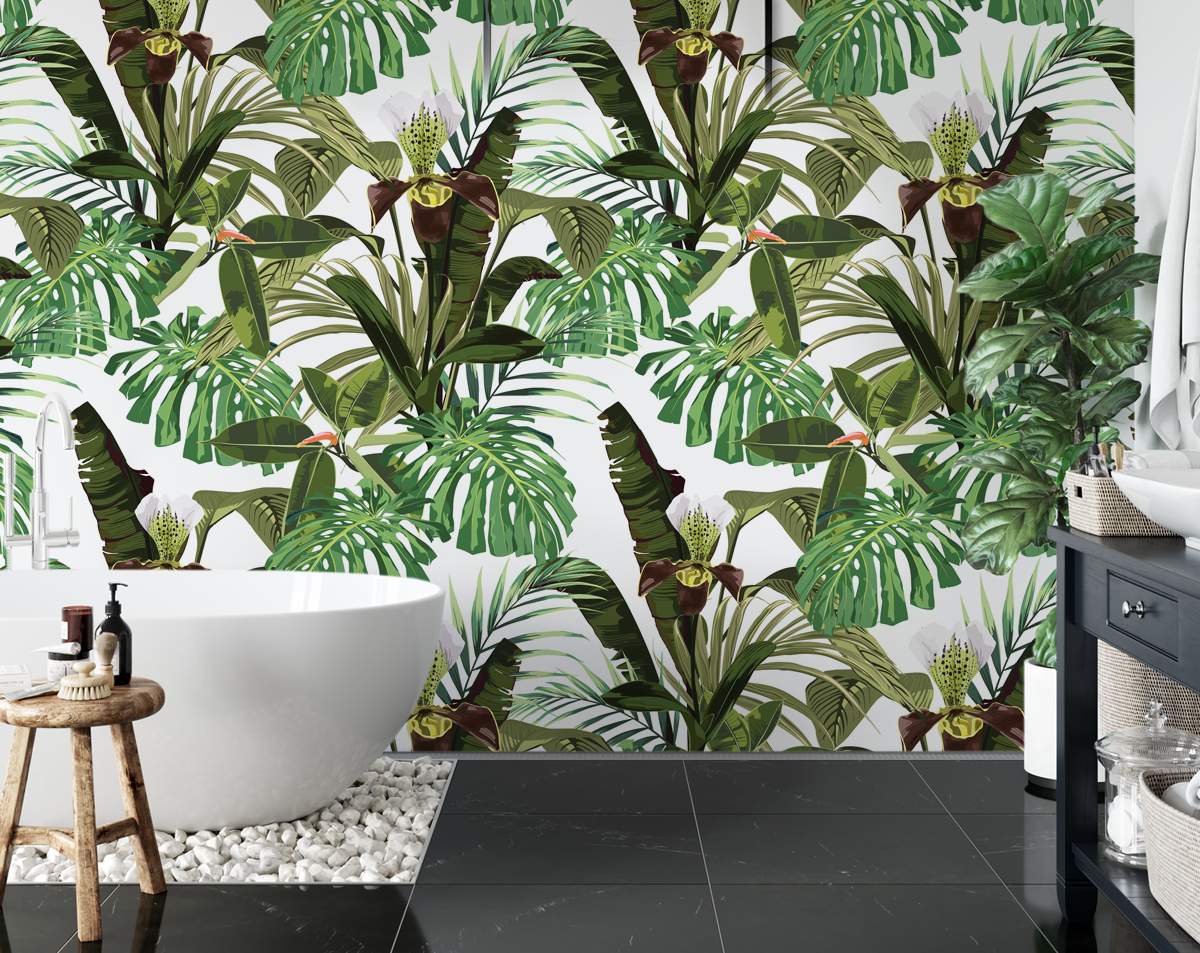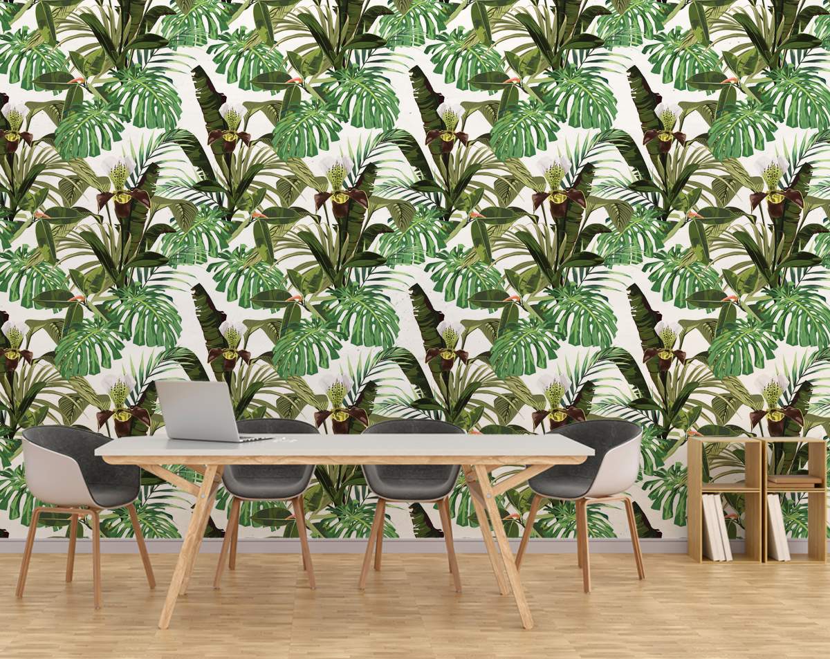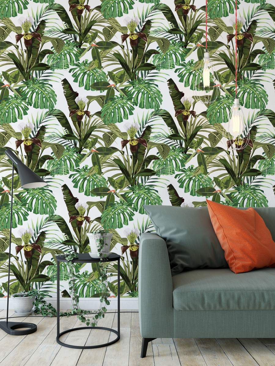 Orchid Palm Banana Leaves Wallpaper Rolls