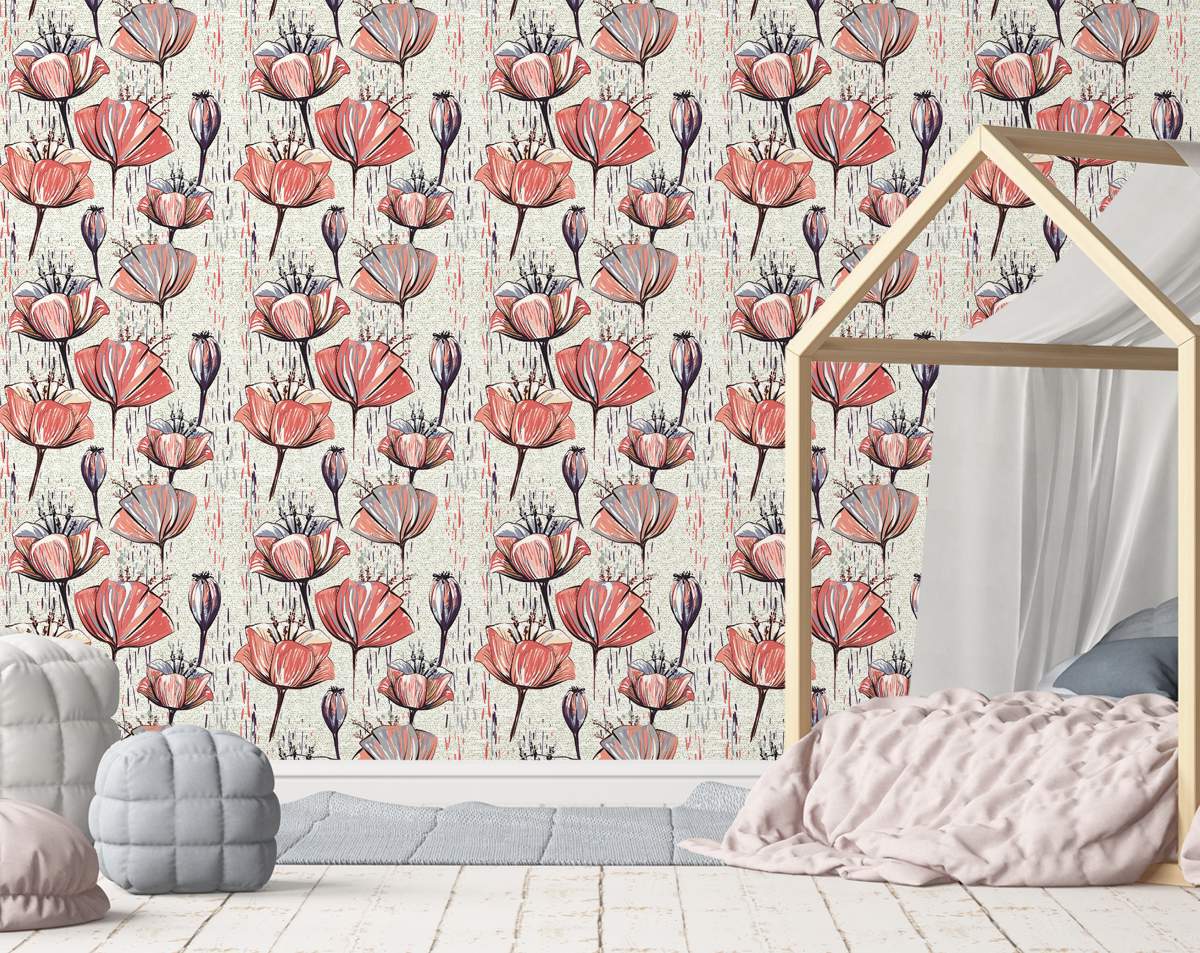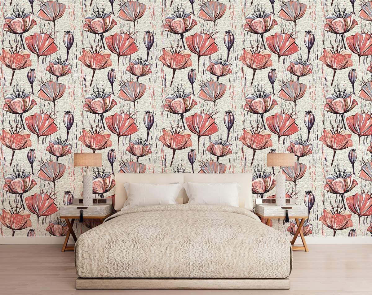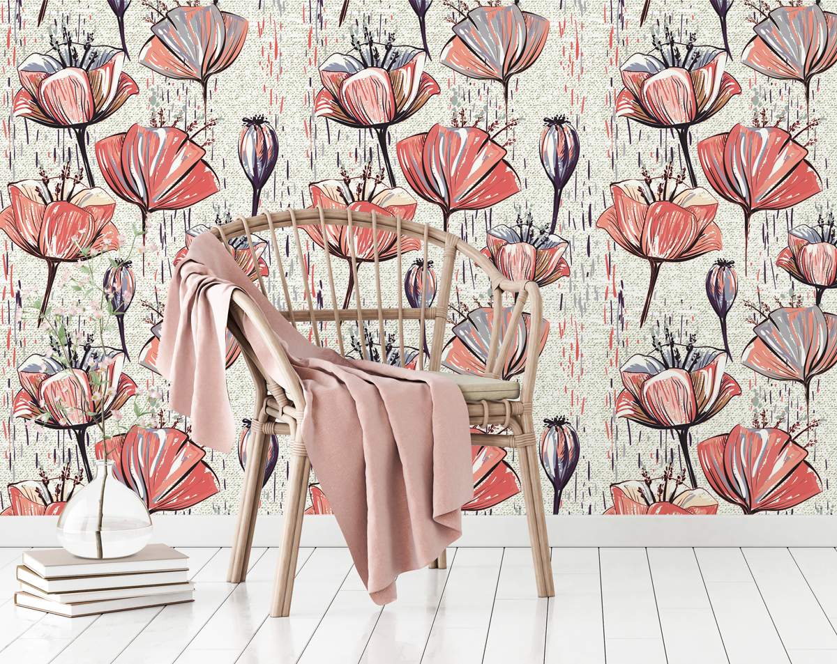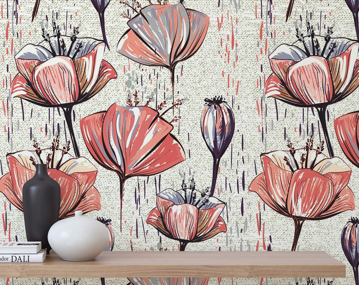 Red Flower Tulip Colourful pattern Wallpaper Rolls