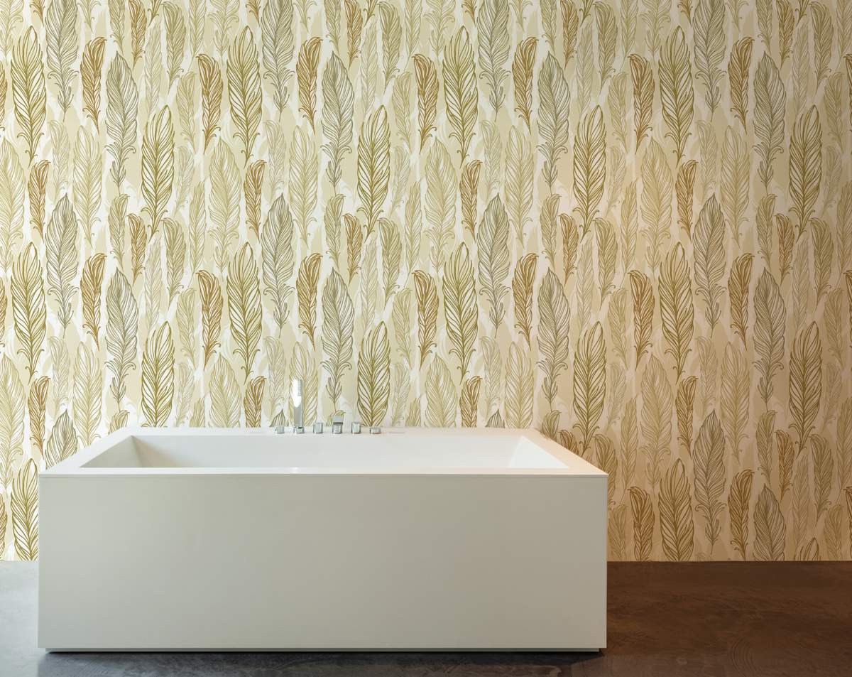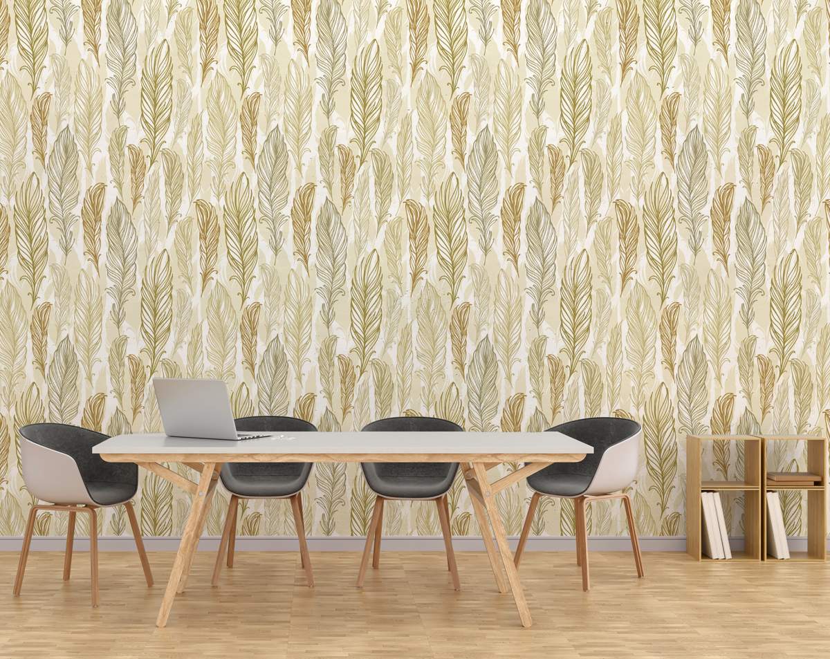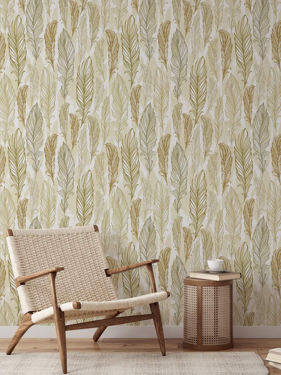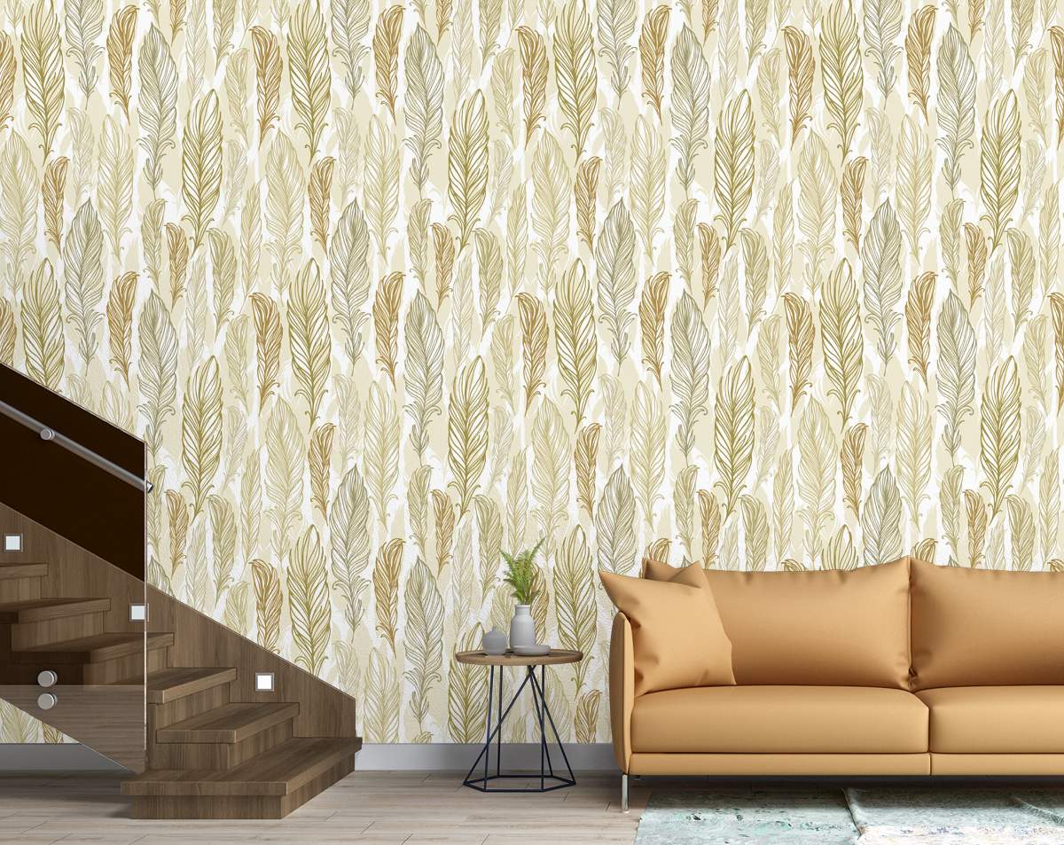 Stylish Trendy Beige Feathers Hand Drawn Wallpaper Rolls