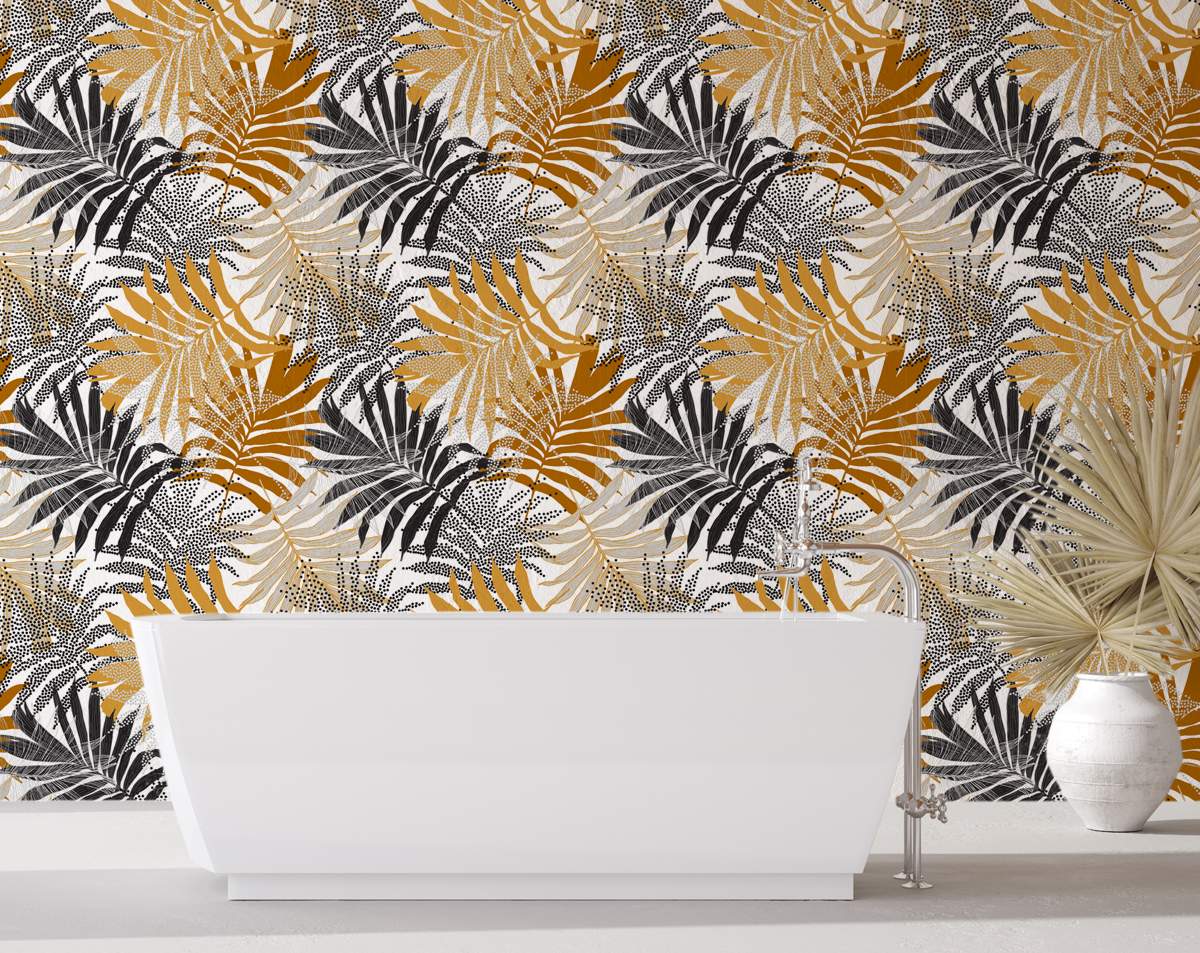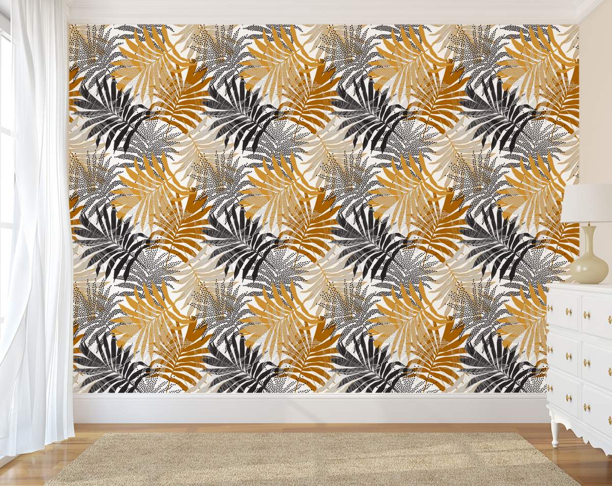 Stylish Trendy Hand Drawn Palm Leaves Half Tone Wallpaper Wallpaper Rolls