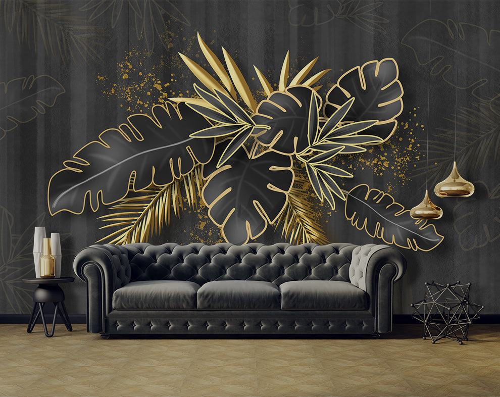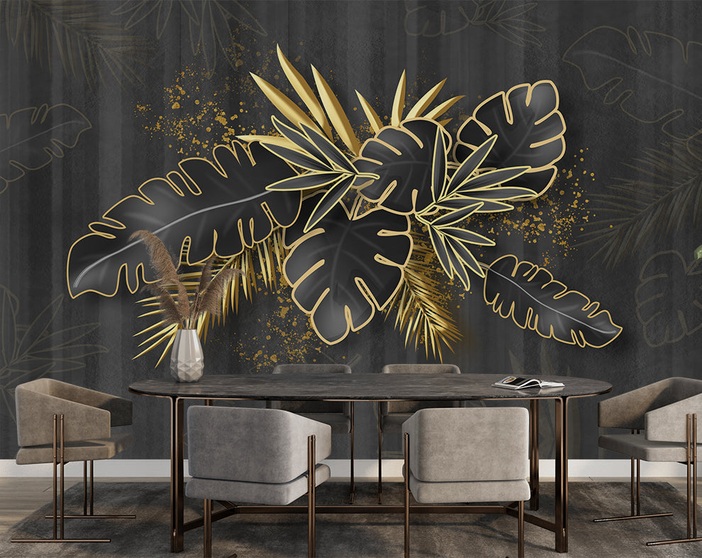 Golden Line Banana Leaf Plant Wallpaper | Tropical Leaves Wallpaper