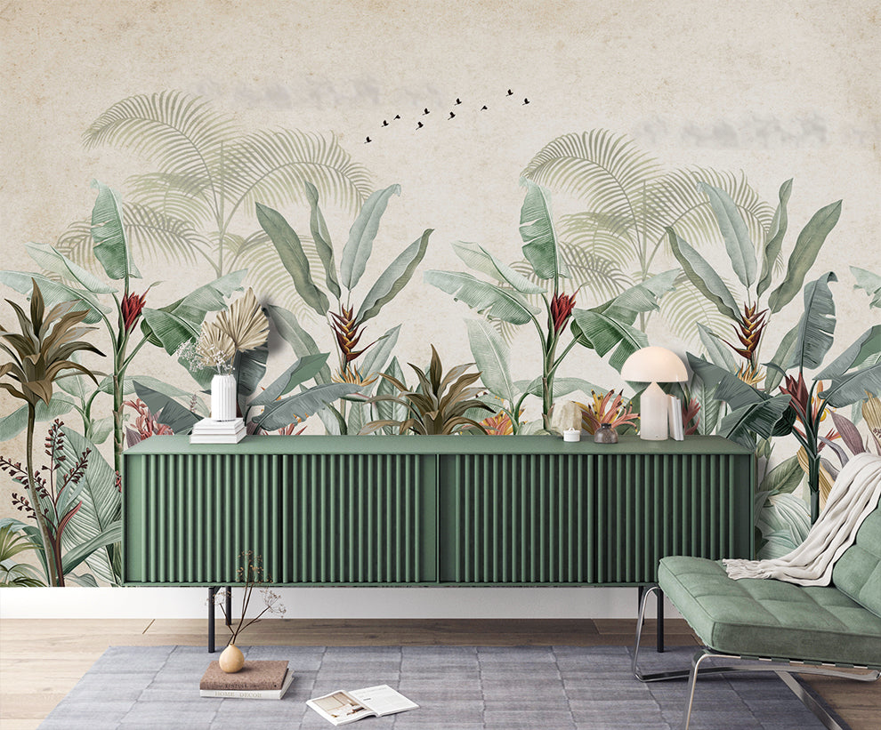 Vintage Botanical Banana Leaf Mural Wallpaper