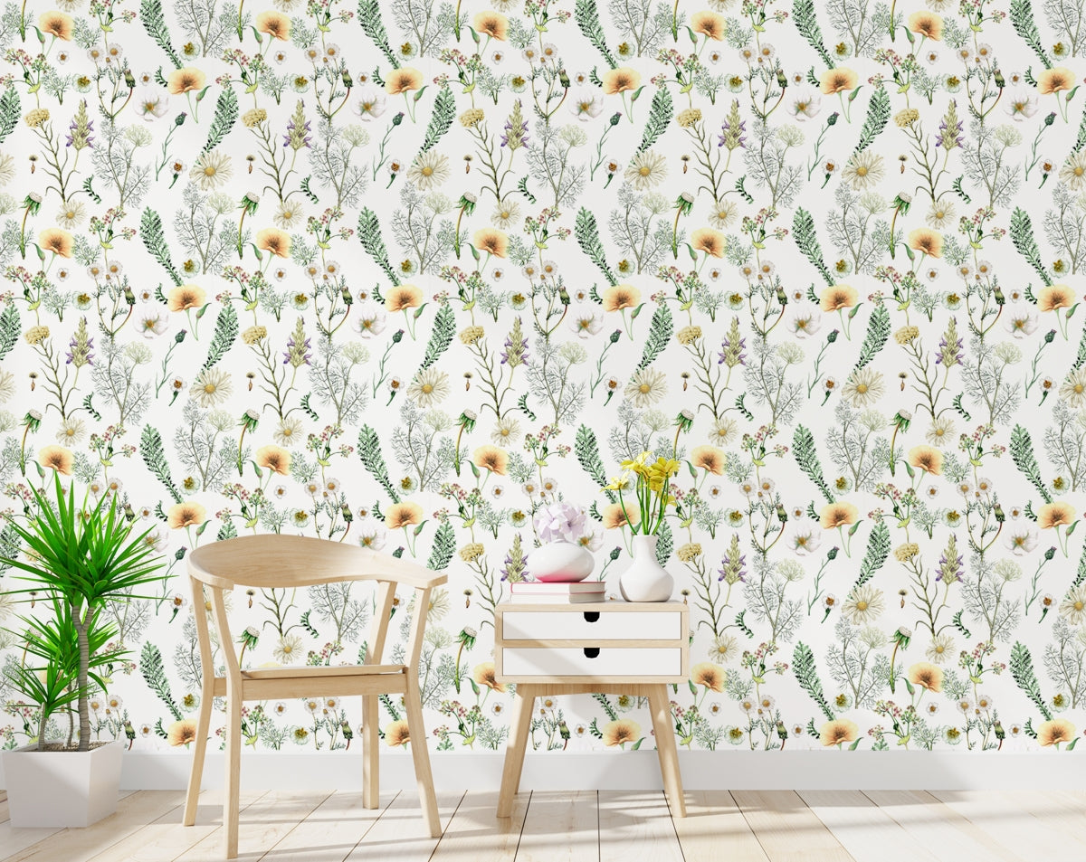 Hand Drawn Wild Flowers Botanical Wallpaper Wall Design