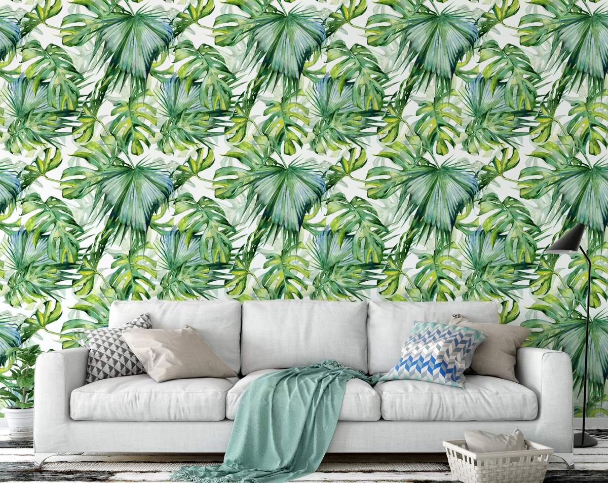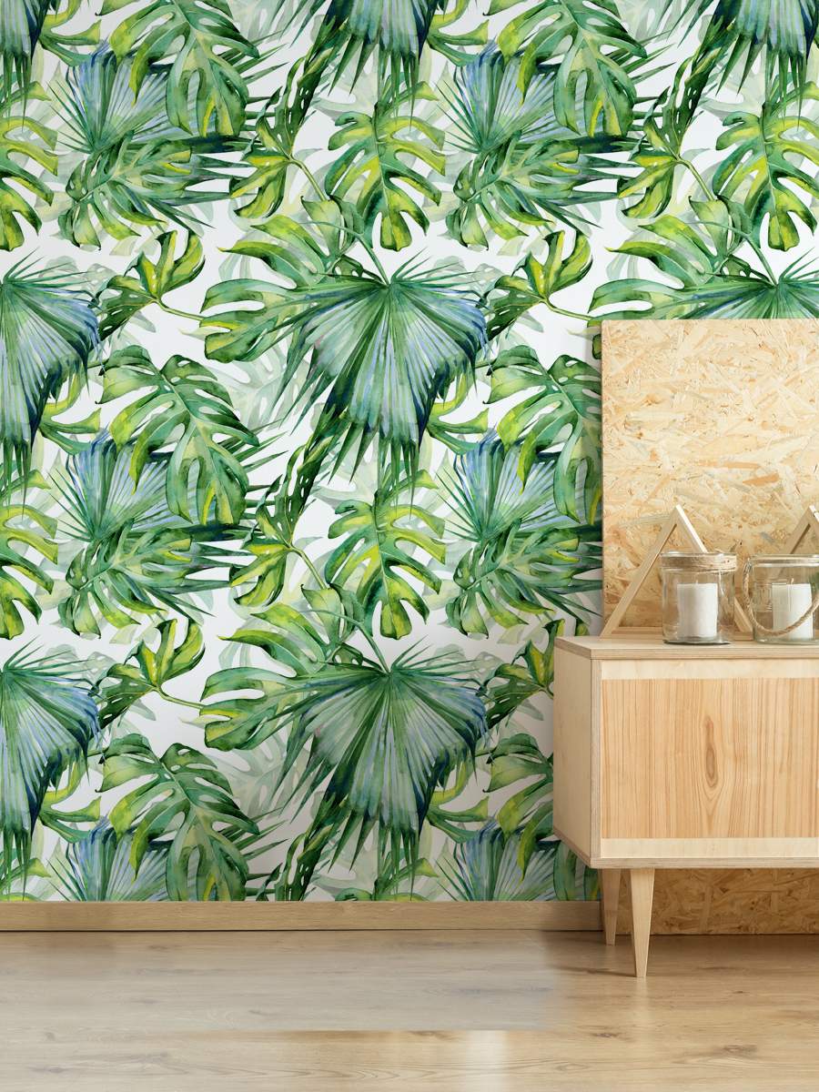 Watercolour Jungle Tropical Leaves Hand Painted Wallpaper Rolls