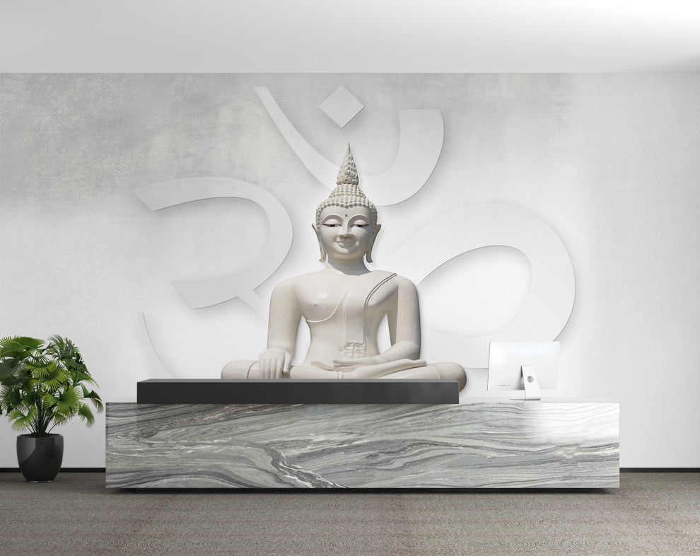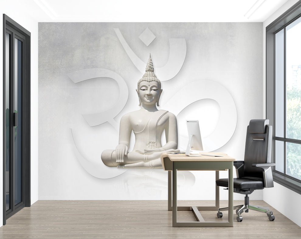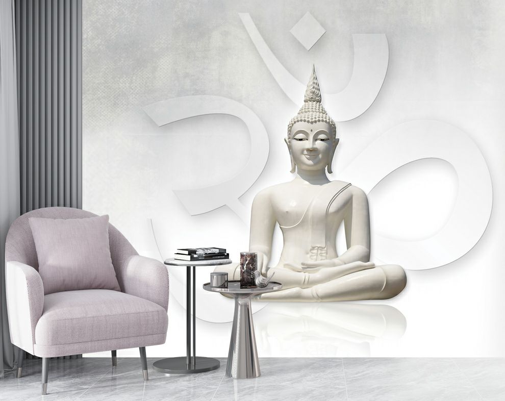 White Buddha Wallpaper for Living Room Wall